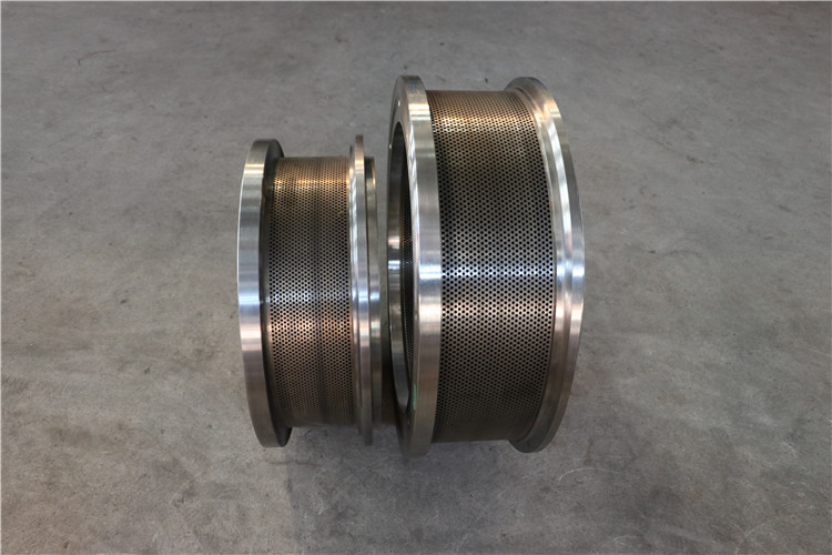 環模進料口孔壁光潔度高,減少物料進入模孔的阻力,有利于物料通過提高制粒產量:環模進料口孔角度均勻一致,確保環模出料整齊度好。
